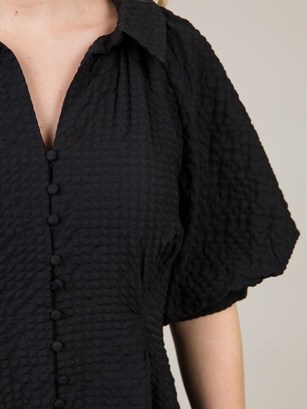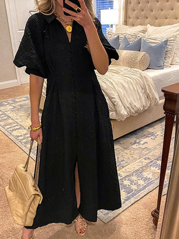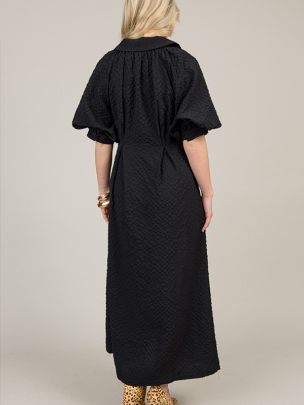 Timeless Elegance: Lapel Button Bubble Sleeve Cotton Linen Dress