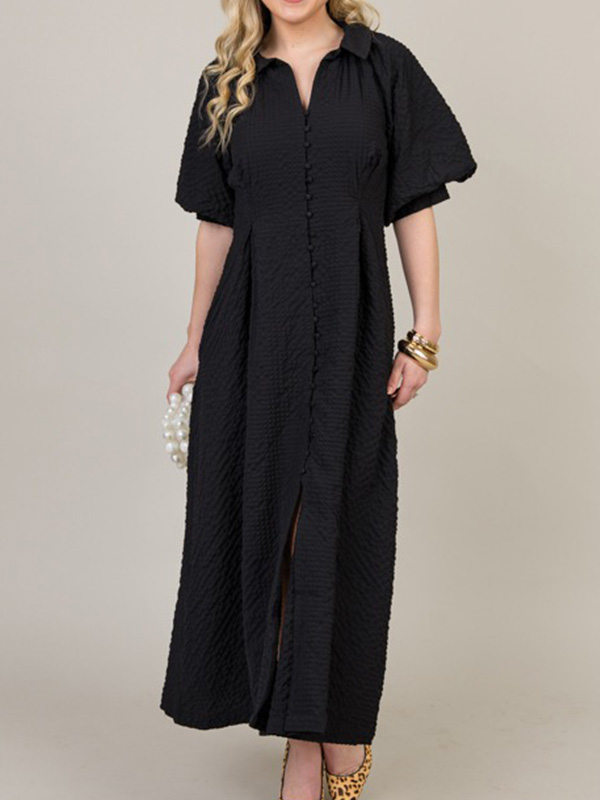 Introducing our Lapel Button Bubble Sleeve Cotton Linen Dress, designed for the modern woman who values sophistication and style. This dress features a stunning print and elegant maxi length, making it perfect for any occasion.