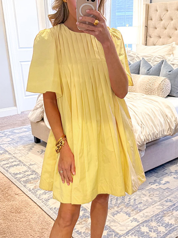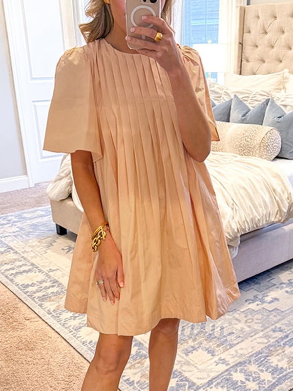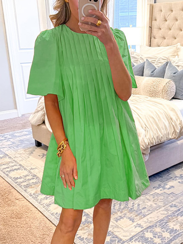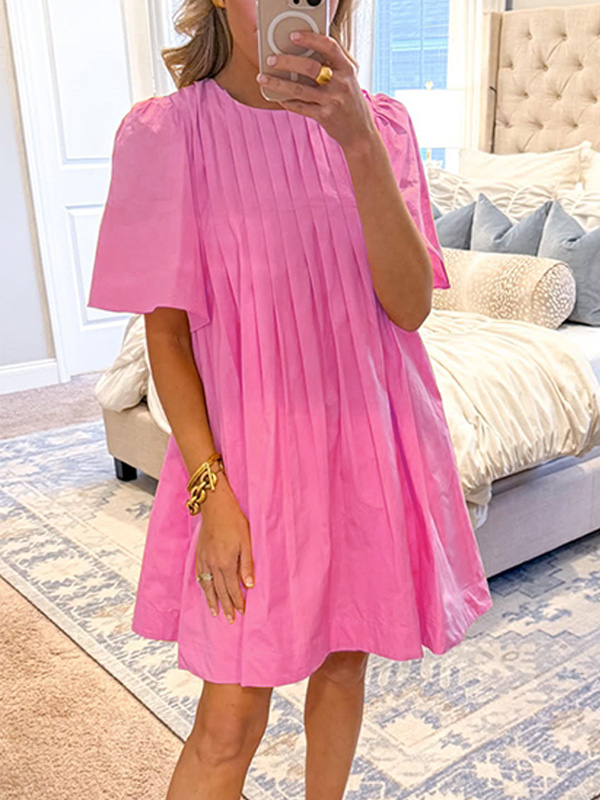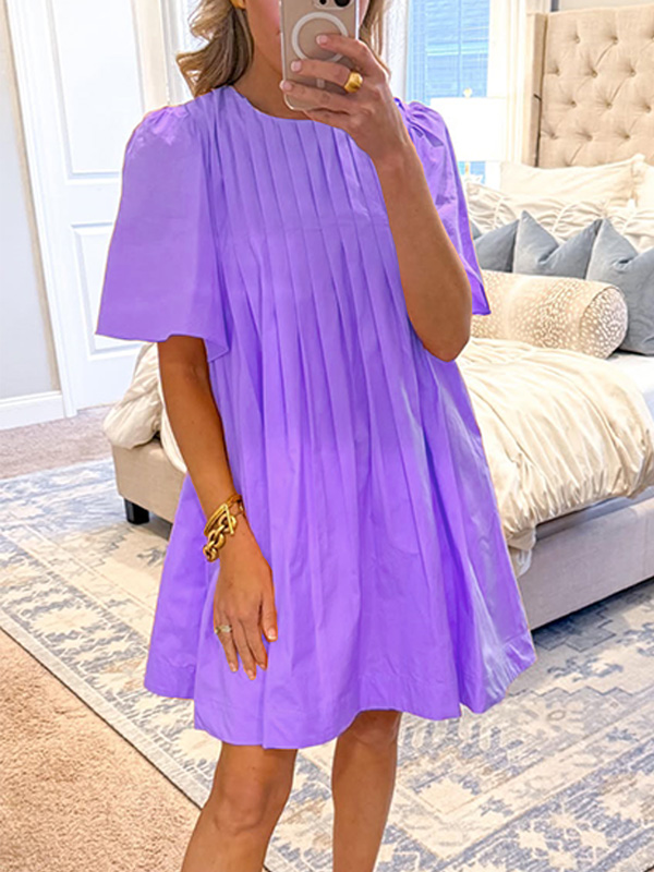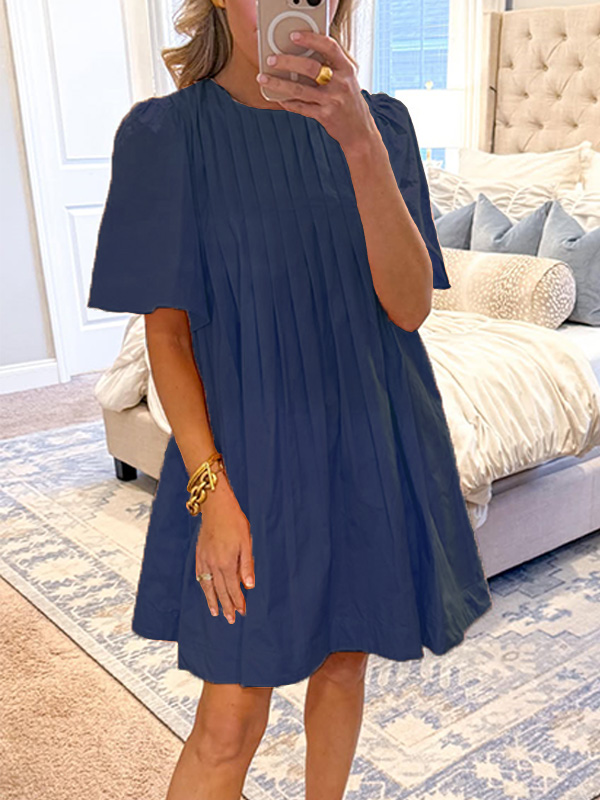 NEW🔥 Loose Round Neck Pleated Dress- Tax Free