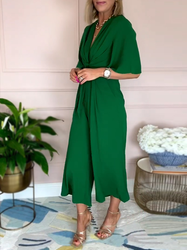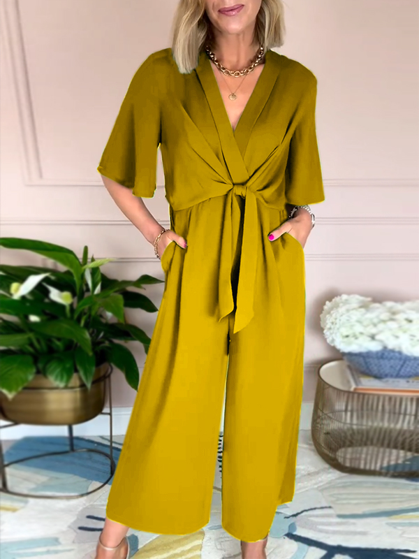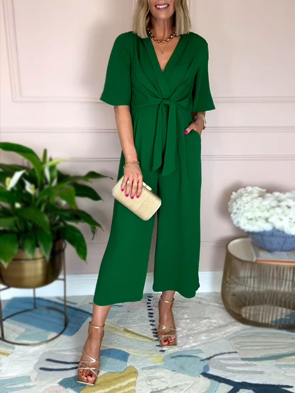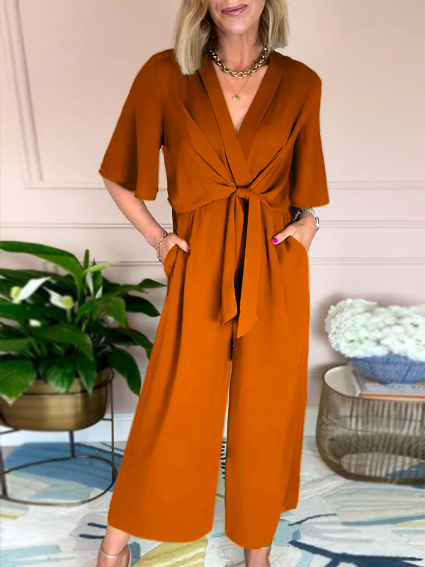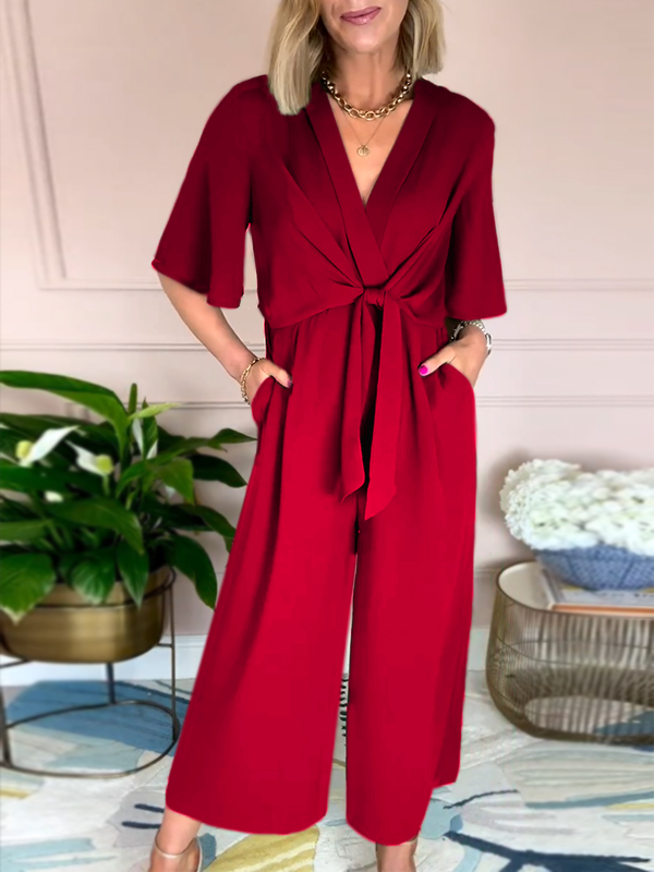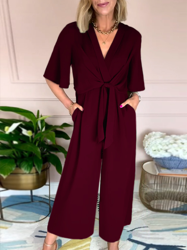 Timeless Elegance: V Neck Front Tie Jumpsuit