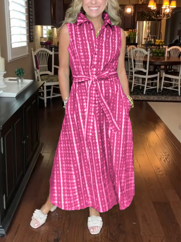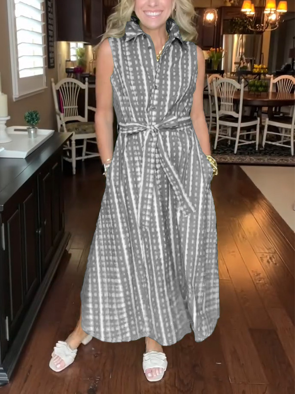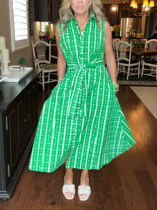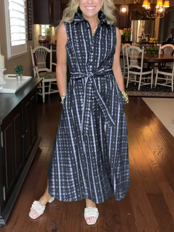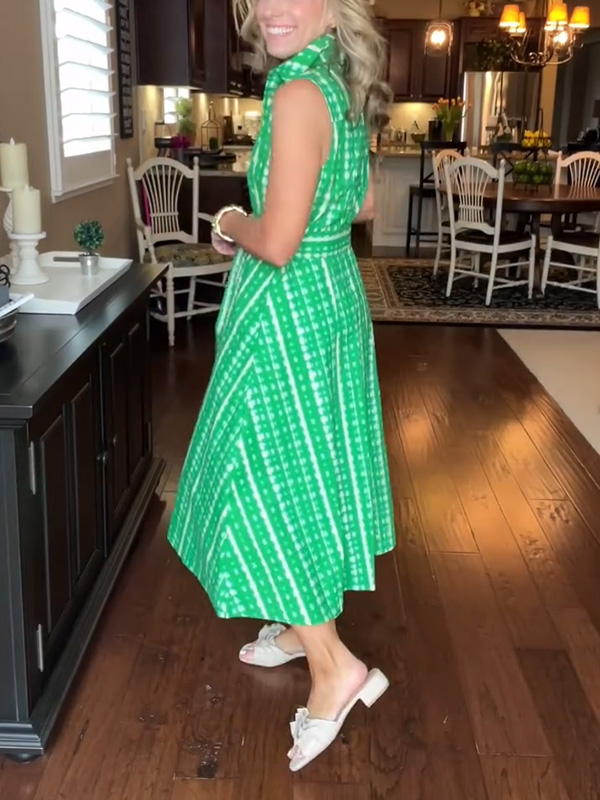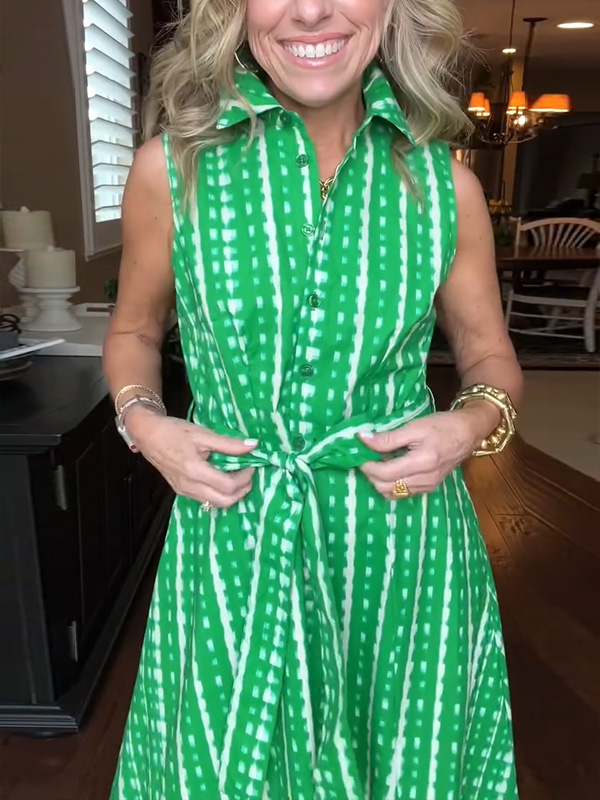 Timeless Elegance: Lapel Button Printed Waistband Dress
