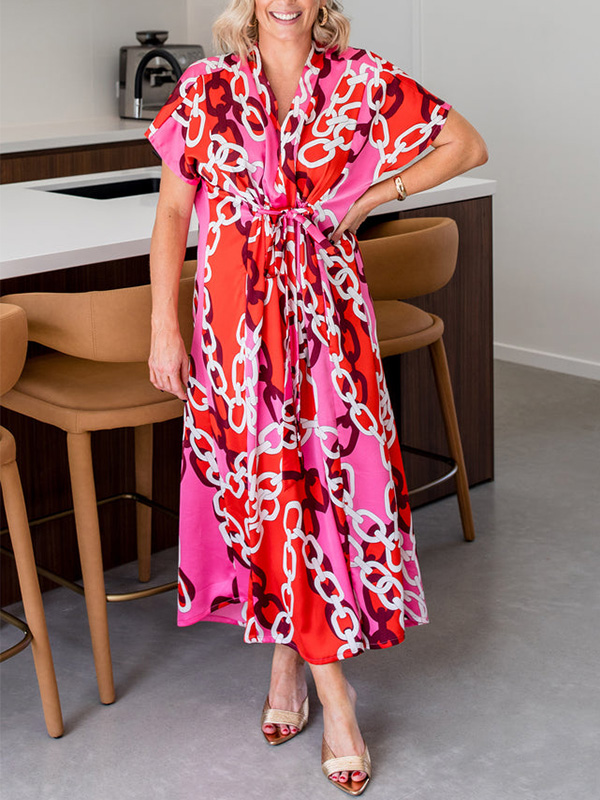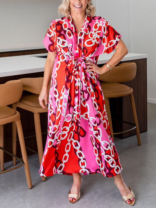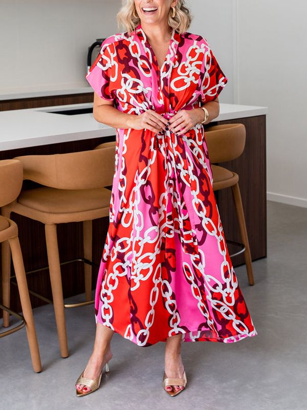 Timeless Elegance: V Neck Printed Satin Dress