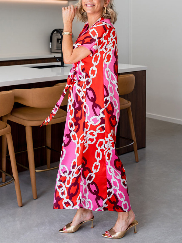 Introducing our V Neck Printed Satin Dress, designed for the modern woman who values sophistication and style. This dress features a stunning print and elegant maxi length, making it perfect for any occasion.