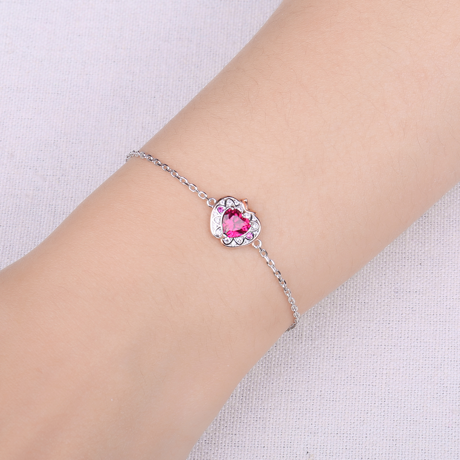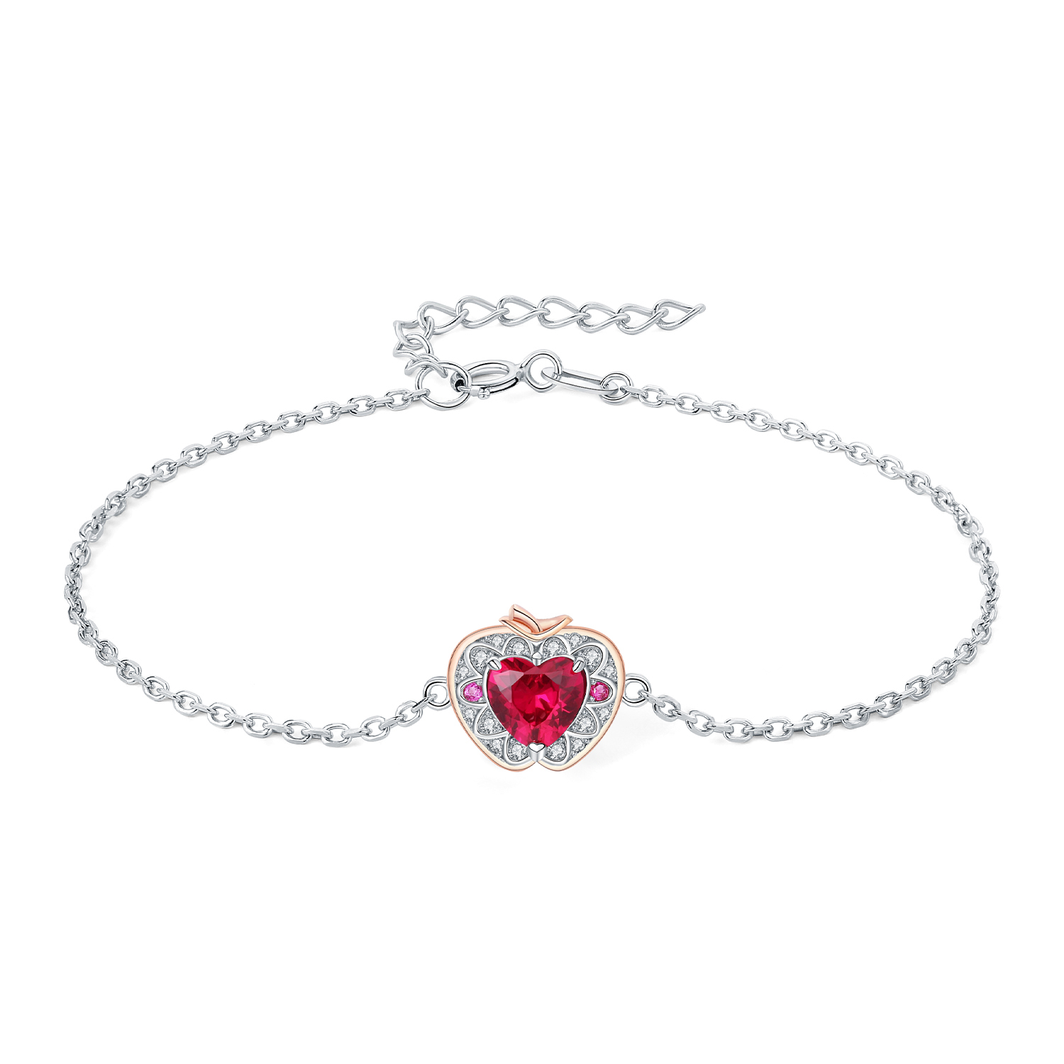 Designed with the looks of an antidote, this sparkling apple bracelet with Created ruby center seems to be what you need to get rid of the poison of stress. Glittering with cubic zirconia and a synthetic Created ruby stone, this Apple bracelet inspired by Snow White might just keep the doctor away. Treat yourself to this lovely jewel because you deserve it.