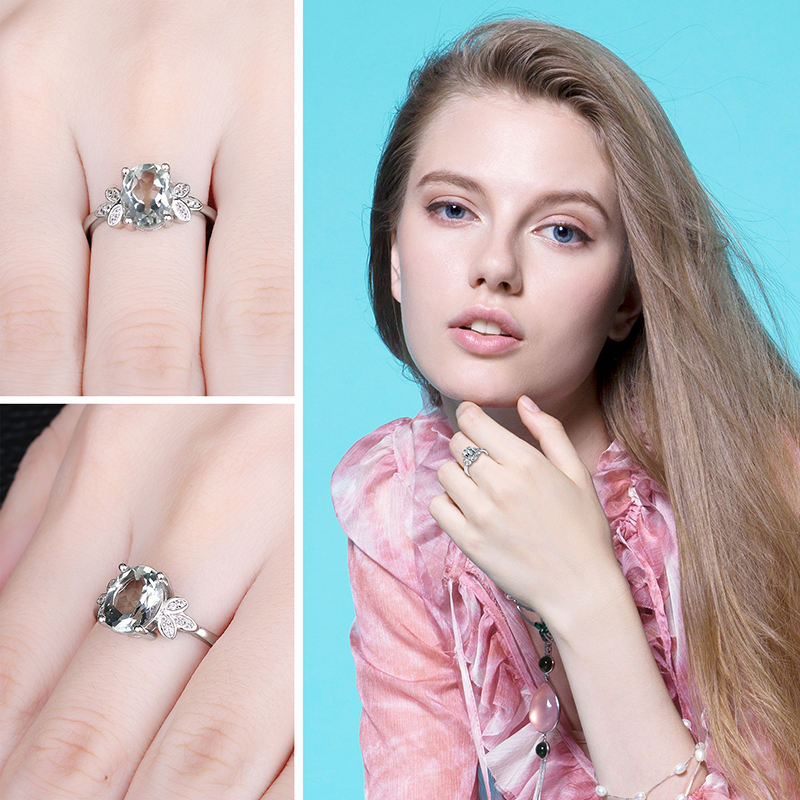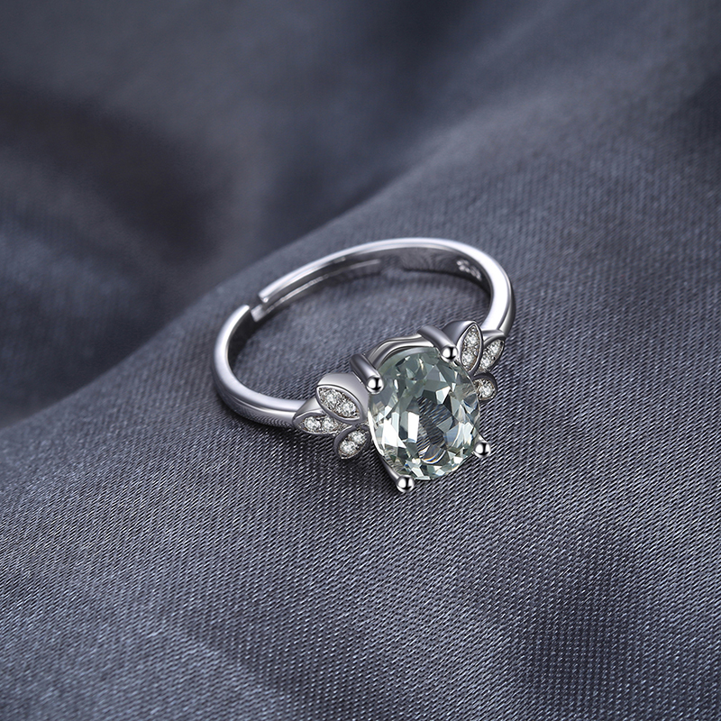 A beautiful center gem blooms from within shimmering cubic zirconia leaves in this chic and memorable setting.