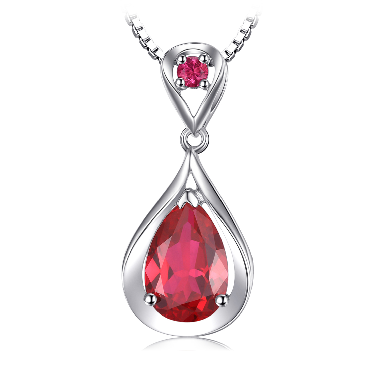 True sophistication. Gorgeous pear-cut rubies are accented with bezel-set cubic zirconia in this graceful statement drop necklace.