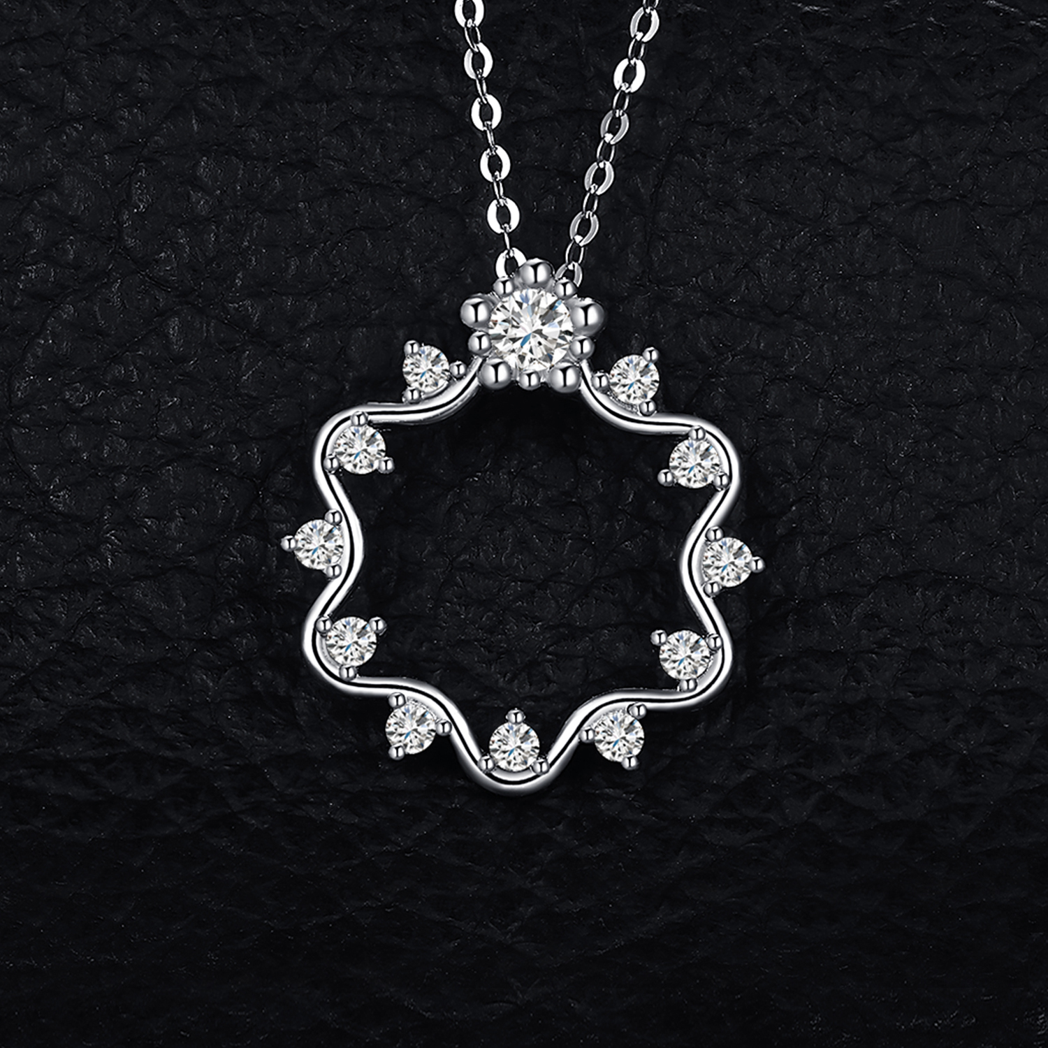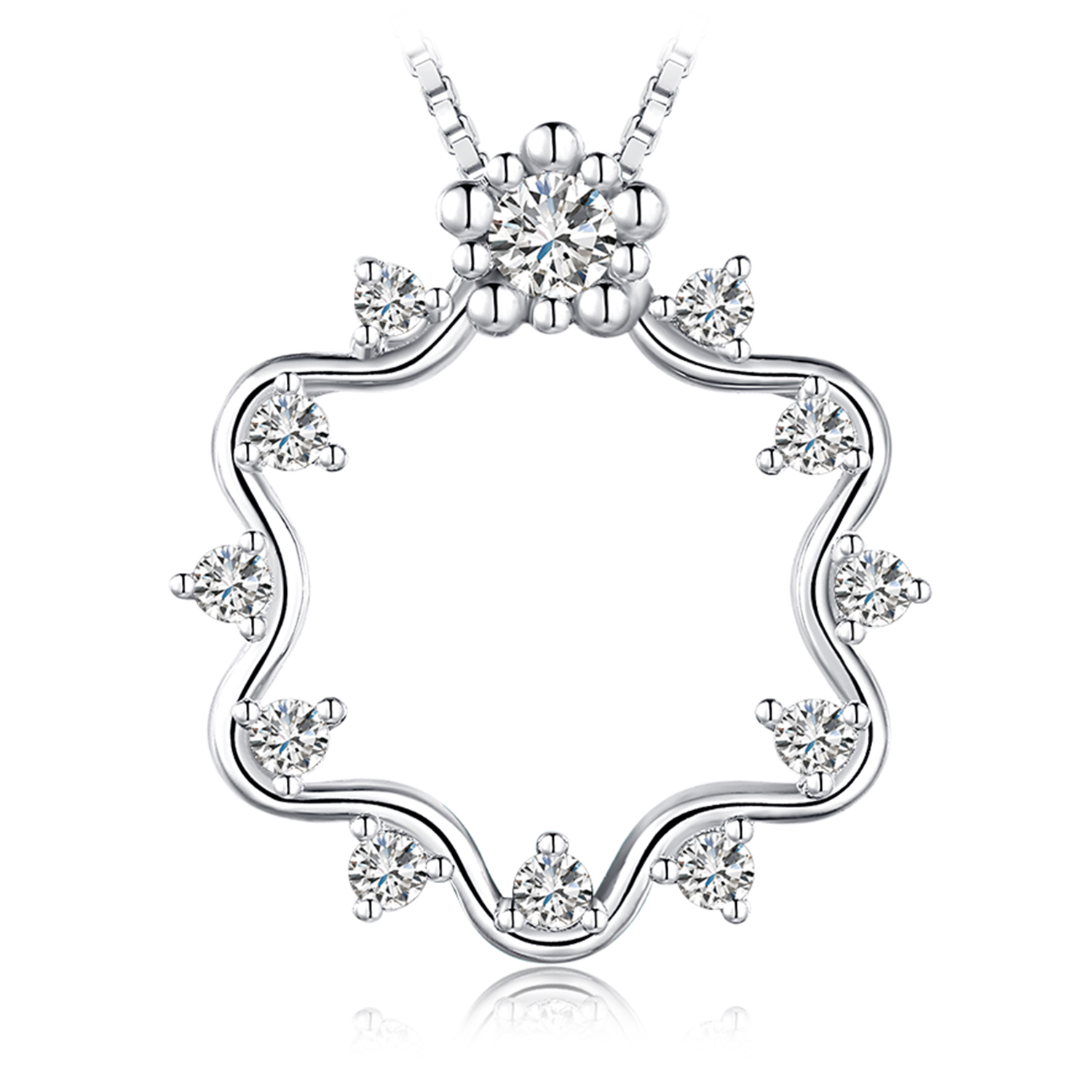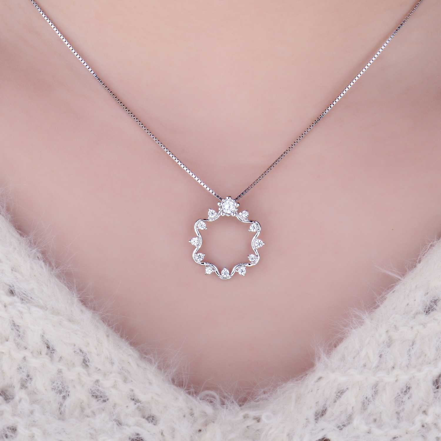 Grace the neck with a flower that never fades. Expressed in exquisite cubic zirconias and sterling silver, this necklace makes a pretty style signature and a meaningful gift for someone special.