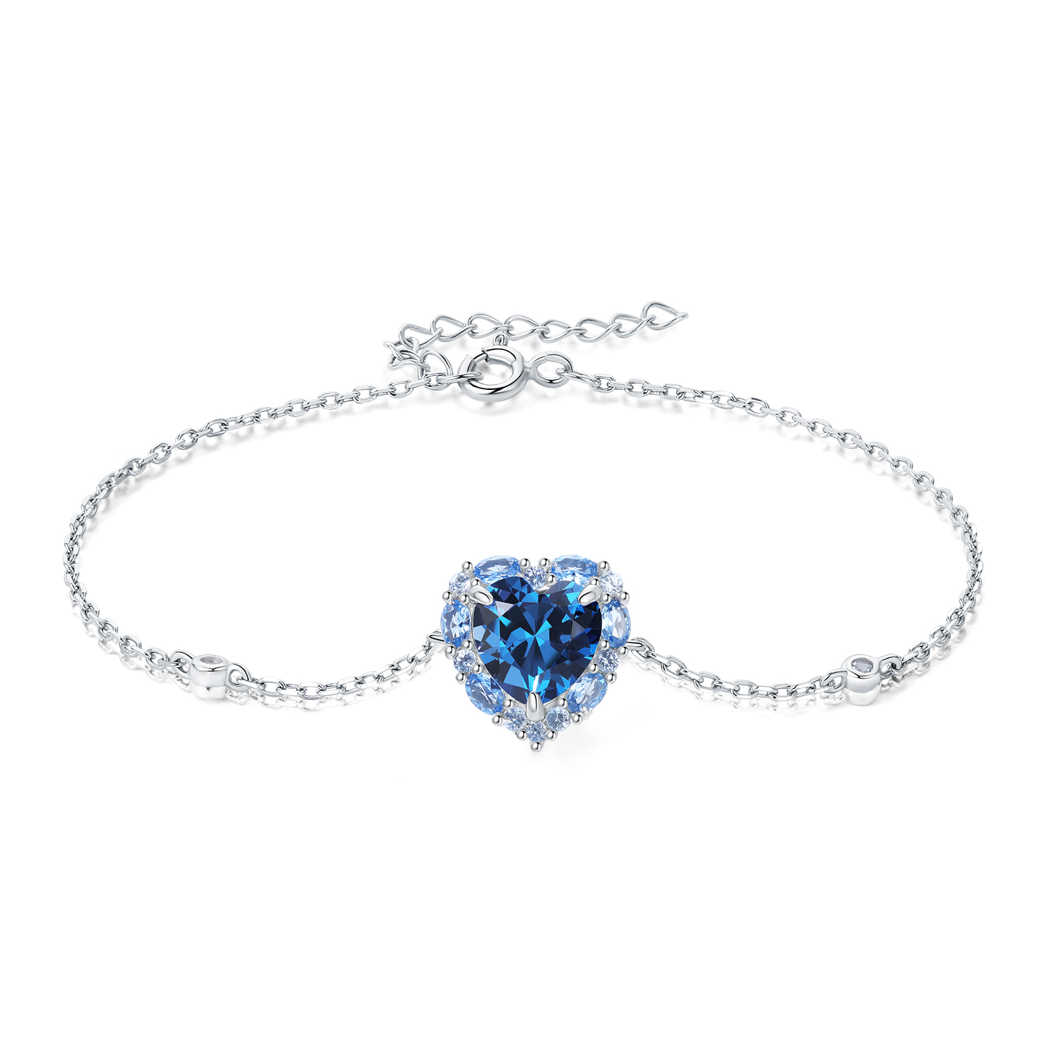 Romantic and charming, this heart bracelet is a casual accessory you'll love to wear. Crafted in sterling silver, this look features a halo heart shapes, artfully adorned with spinel. cubic zirconia shimmer on either side of the center.