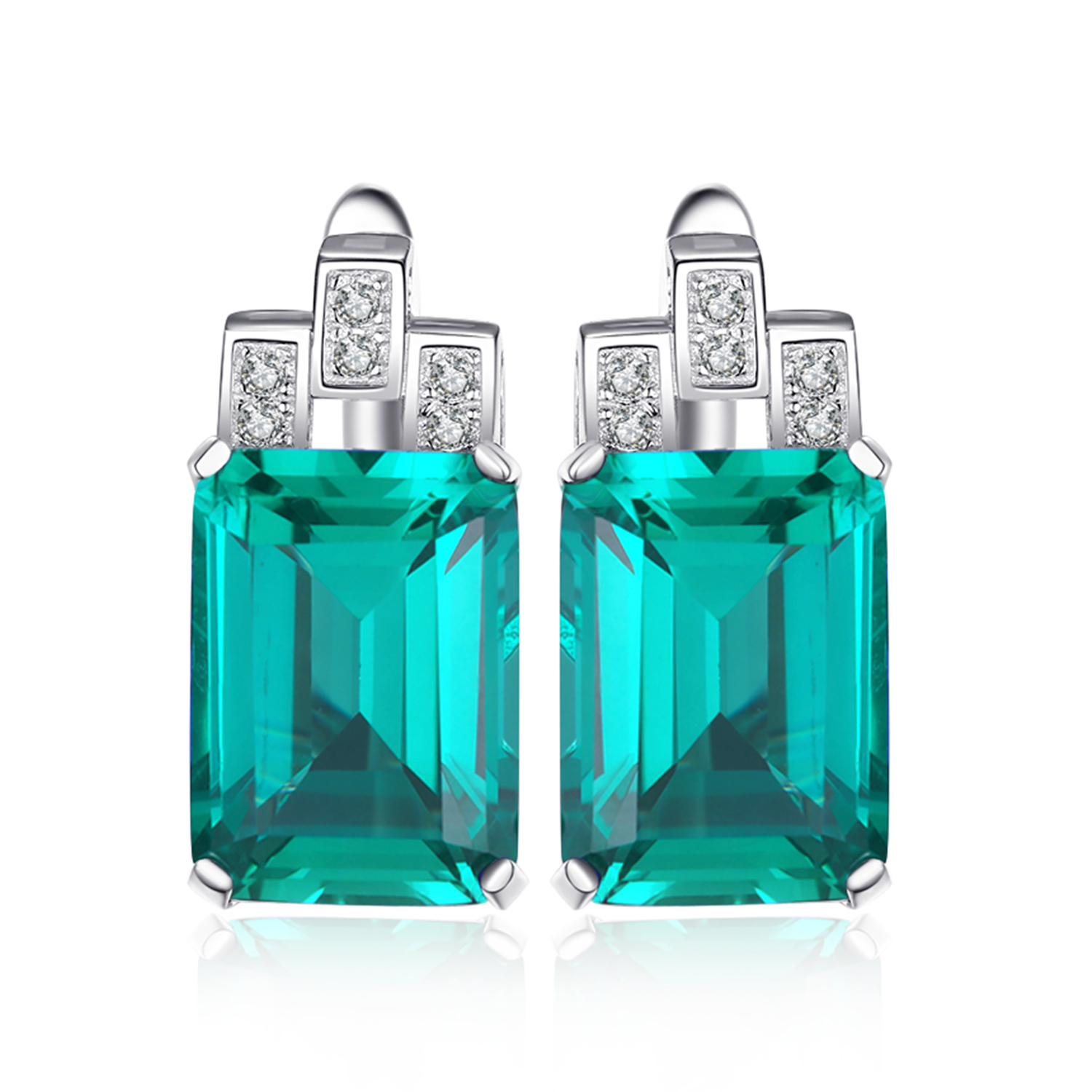 Eye-catching clip-on earrings crafted of 925 sterling silver,featuring 7.6ct Nano Russian Simulated Emerald.Classic style with modern details.