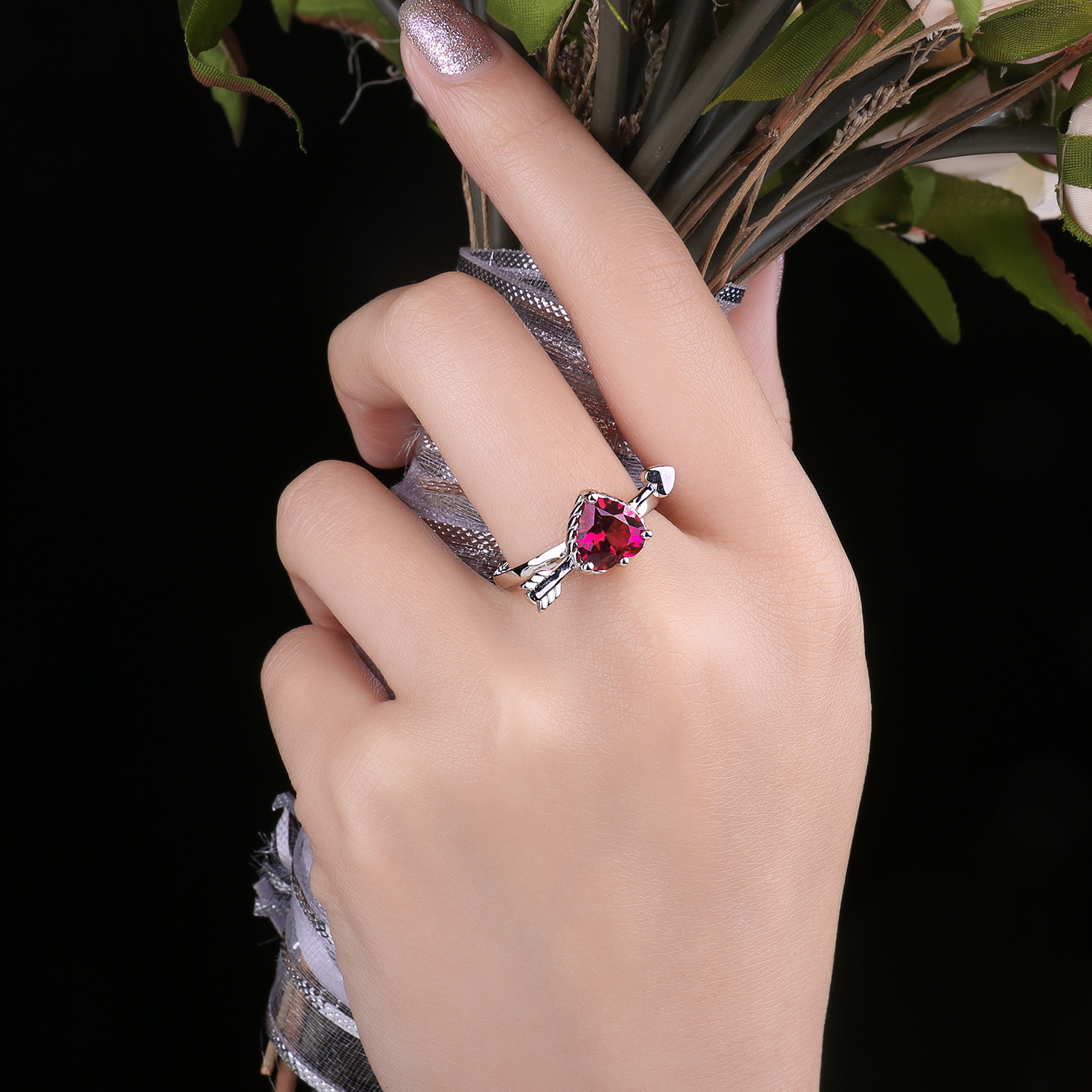 Celebrate her July birthday with this glistening fashion ring. Created in sleek 925 sterling silver, this ring features a heart-shaped frame centered with heart-shaped CZ simulated red ruby. Shimmering sterling silver decorate the ring frame, adding subtle sparkle. A meaningful look she'll turn to often, this ring is polished to a brilliant shine.