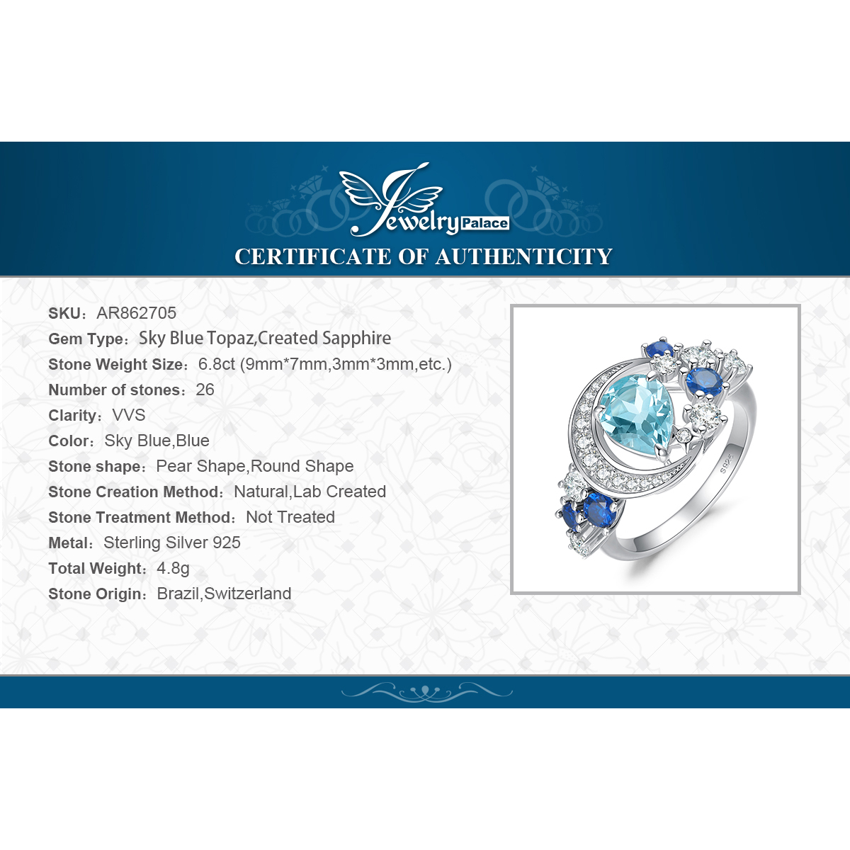 Illuminate her celestial style with this gemstone sun and moon ring. Fashioned in warm 925 sterling silver, this look showcases a genuine sky blue topaz centered in a moon-style frame embraced by shimmering CZ-adorned rays. Additional grace the stars, sun, and crescent moon-shaped stations. Radiant with cubic zirconia and a brilliant buffed luster, this design suspends centered along.