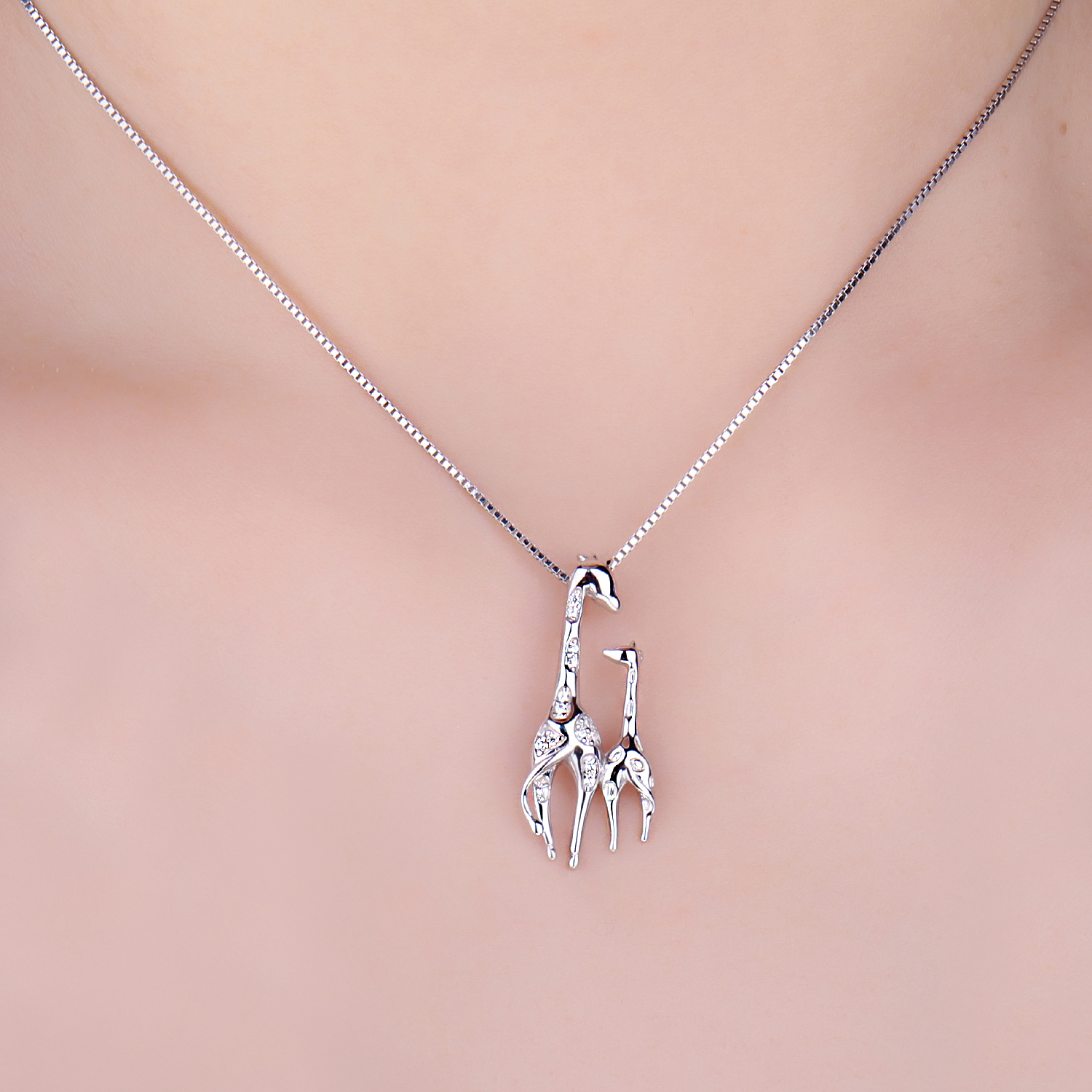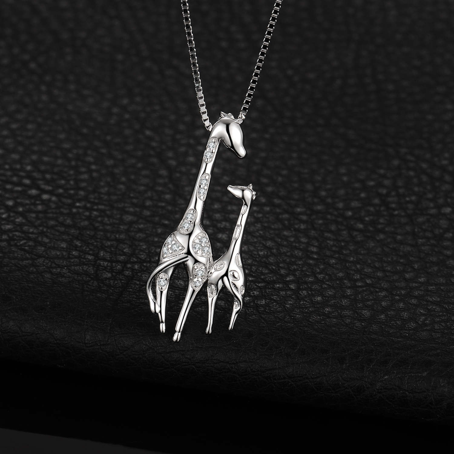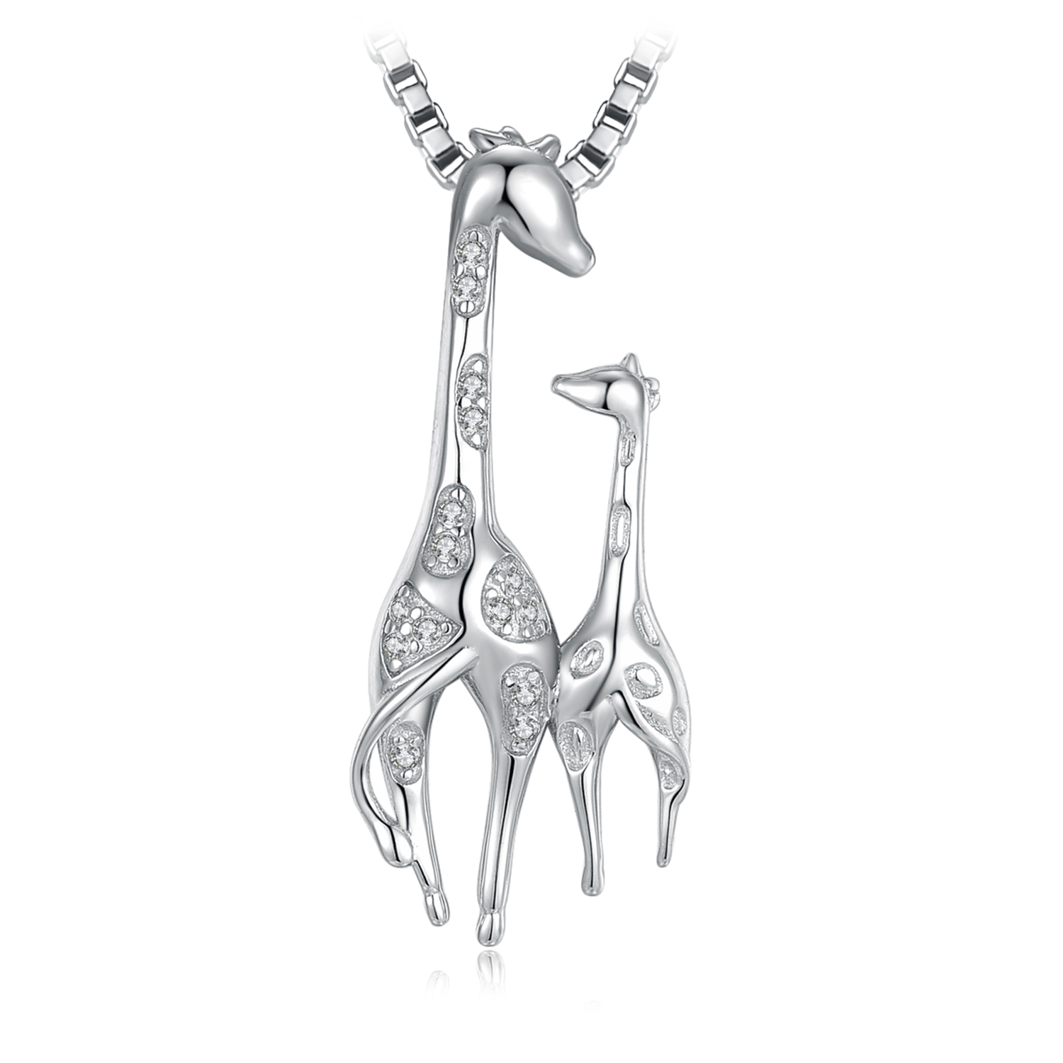 Giraffe mother and baby showcase a close relationship, say your love to Mom with this cherishable giraffe necklace. Crafted of 925 sterling silver, and adorned with dotted cubic zirconia.