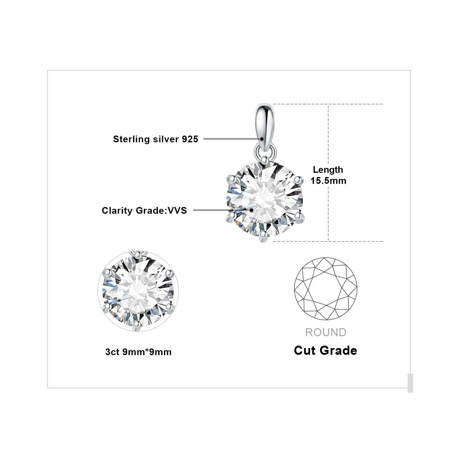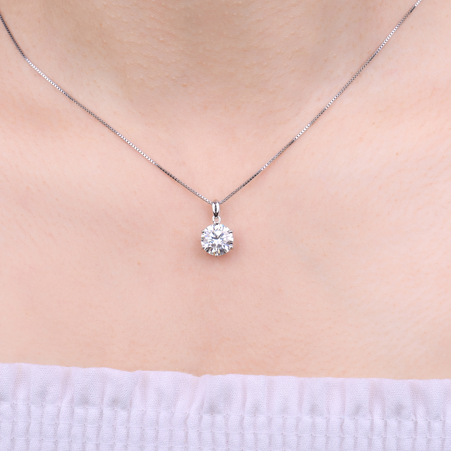 Radiate with elegance wearing our 3-carat, 6-prong set Moissanite Sterling Silver Necklace. Featuring Moissanite, known for its higher refractive index and brilliance compared to diamonds, this necklace sparkles with captivating radiance. Its exceptional hardness and durability make it the perfect choice for timeless jewelry. Unparalleled beauty that will forever captivate.