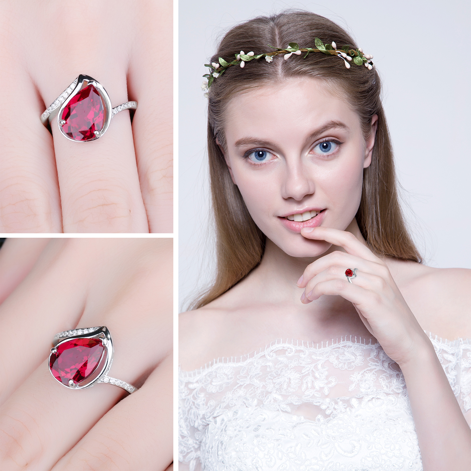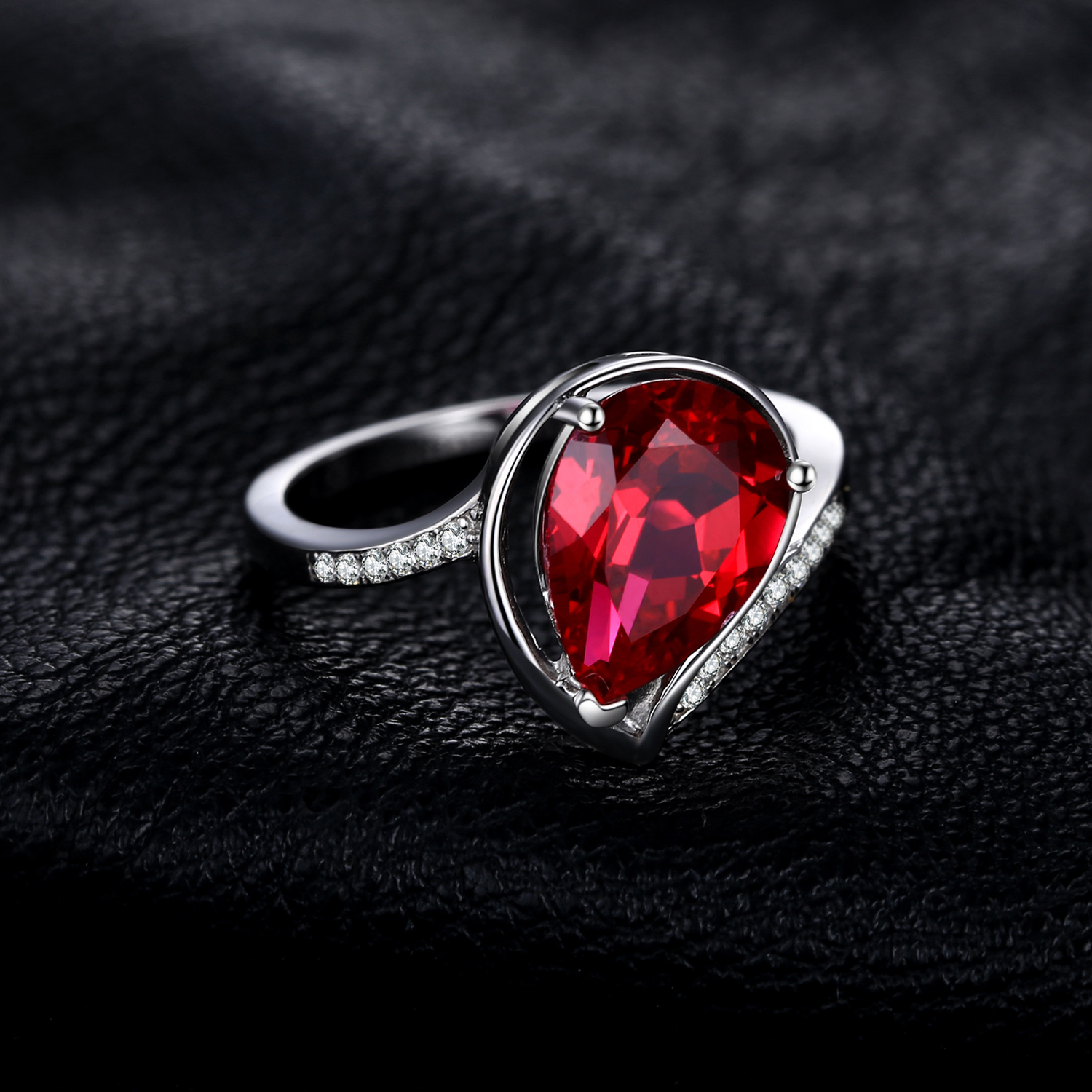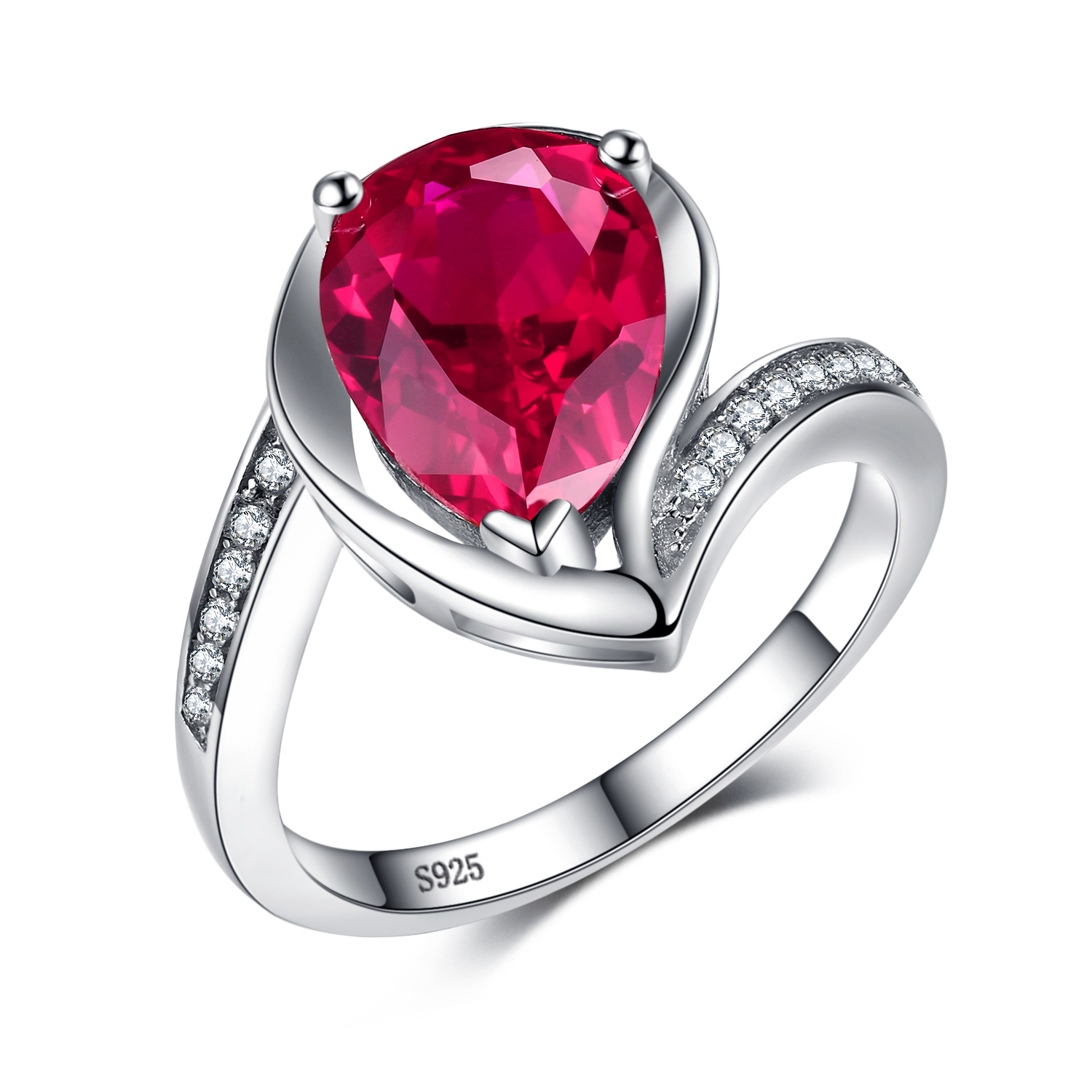 This sterling silver engagement ring features a beautiful twist design with a lab-created ruby center stone and shimmering cubic zirconias.