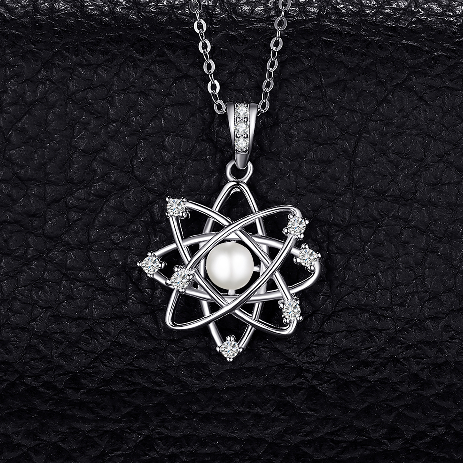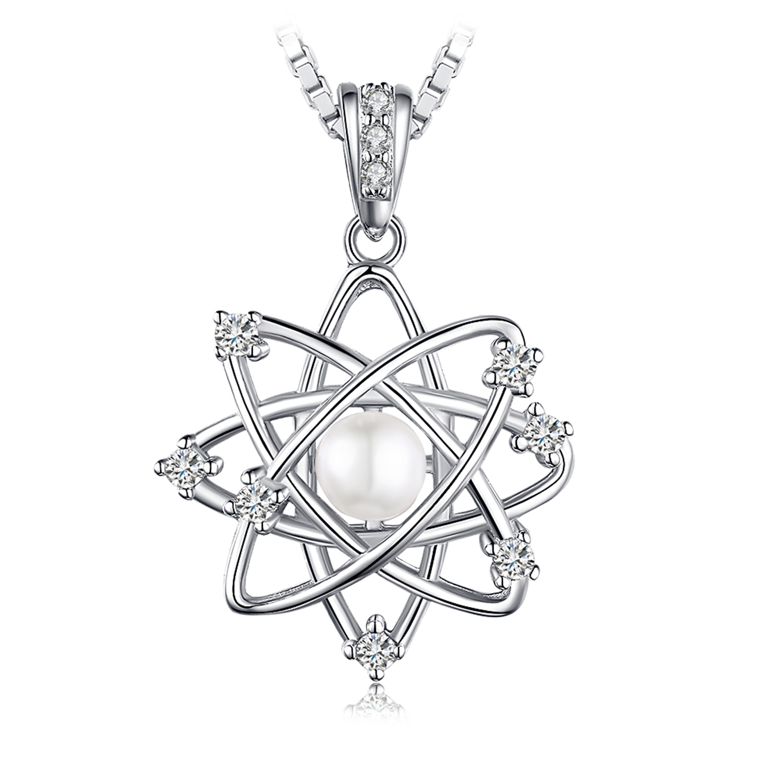 A twinkling star embellished with cubic zirconia crystals forms the perfect complement to a pretty 4mm oval pearl.
