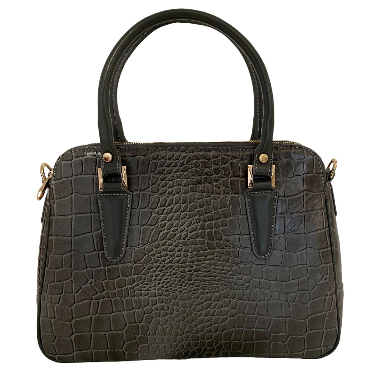 • LeatherLuxe - Silver Leather Office Bag: Functional Shoulder Bag; Crocodile Style