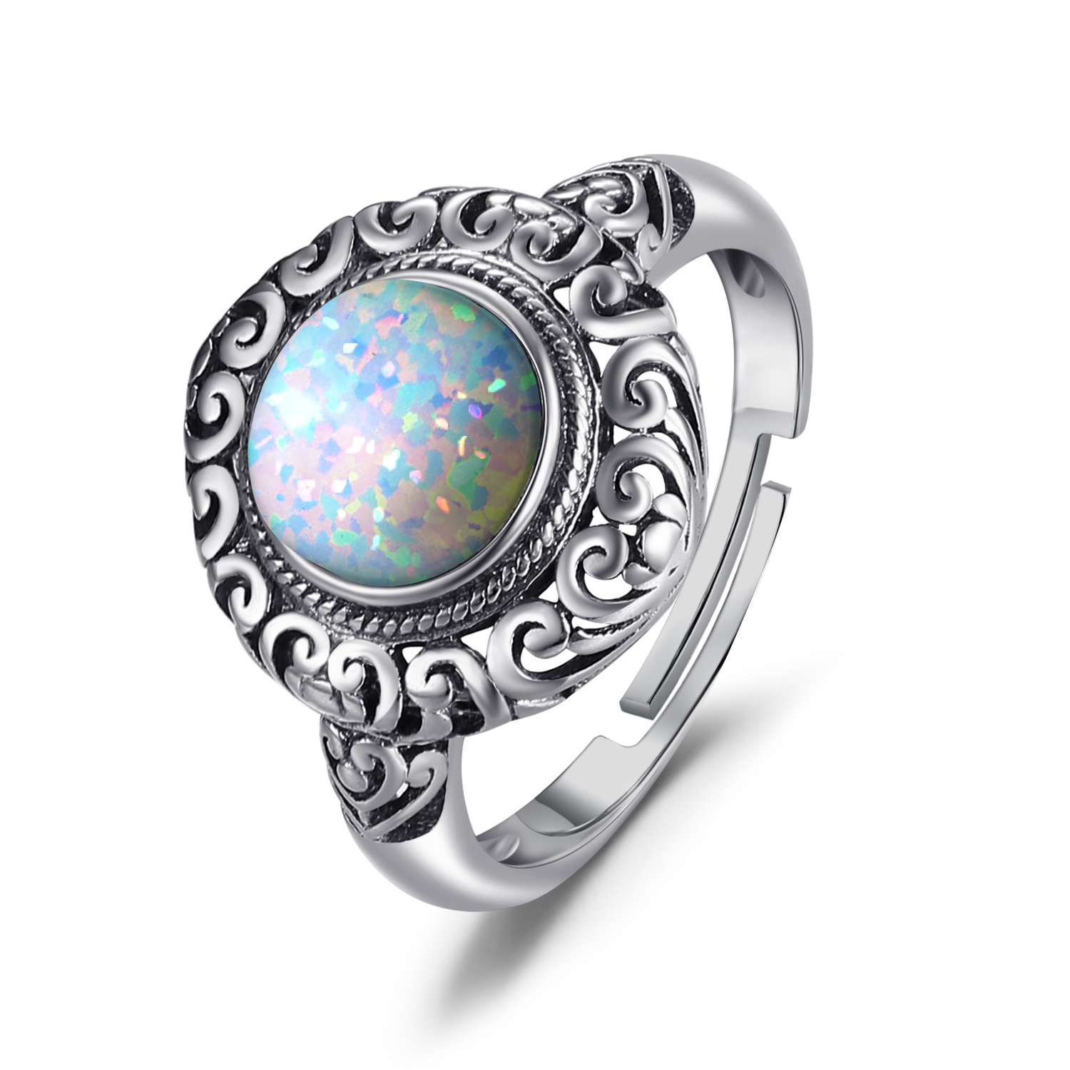 This handcrafted ring is lovely and other-worldly looking, but really quite easy to wear. We've set a brand new, perfectly polished opal at the center! The colors are intense green and orange flashes that come from within the center of the stone.