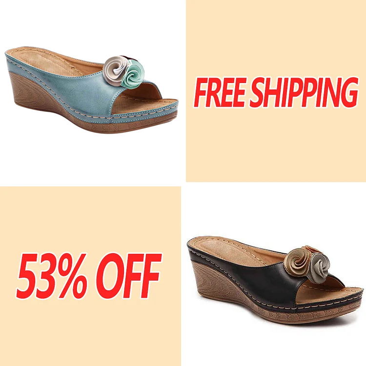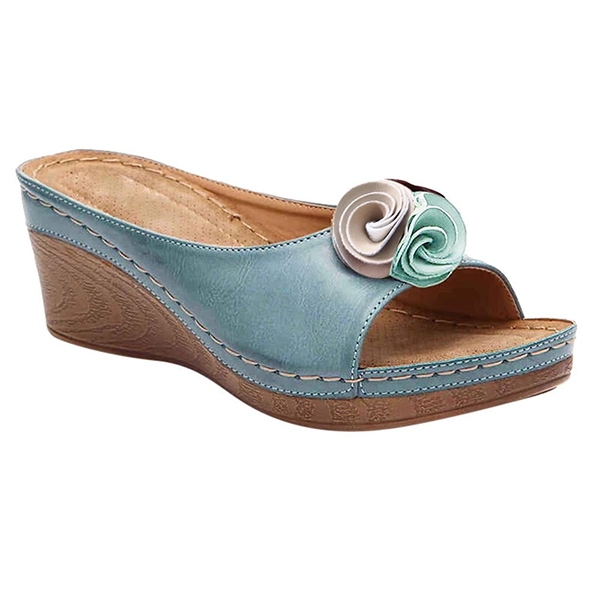 Womens Comfy Leather Solid Flower Strap Wedge Sandals