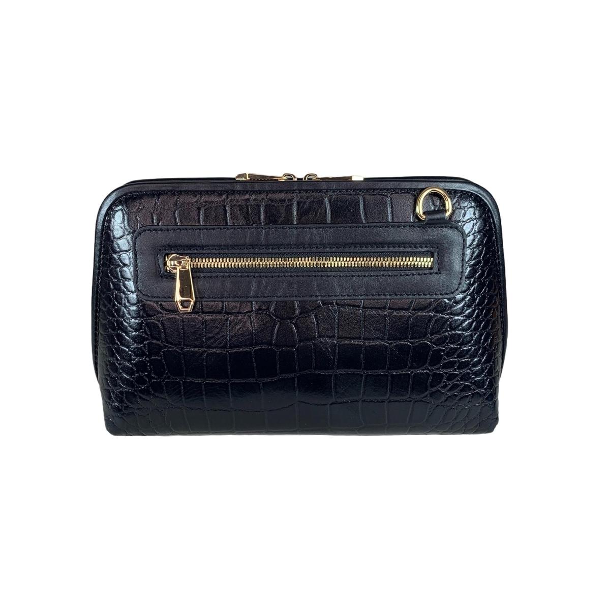 LeatherLuxe - Black Leather Clutch Bag Shoulder Bag; Crossbody