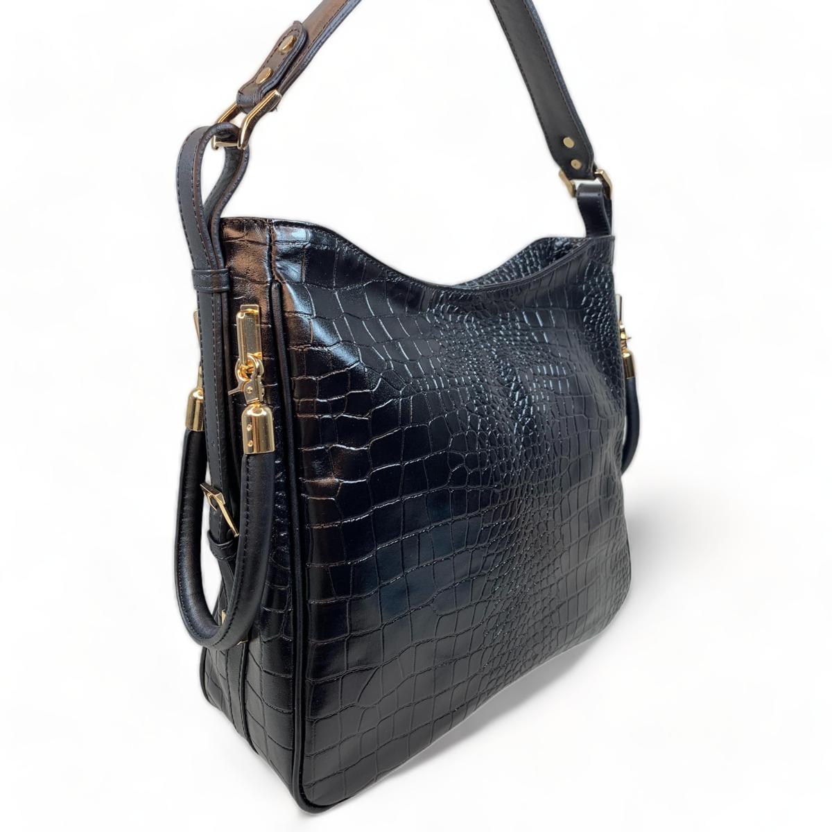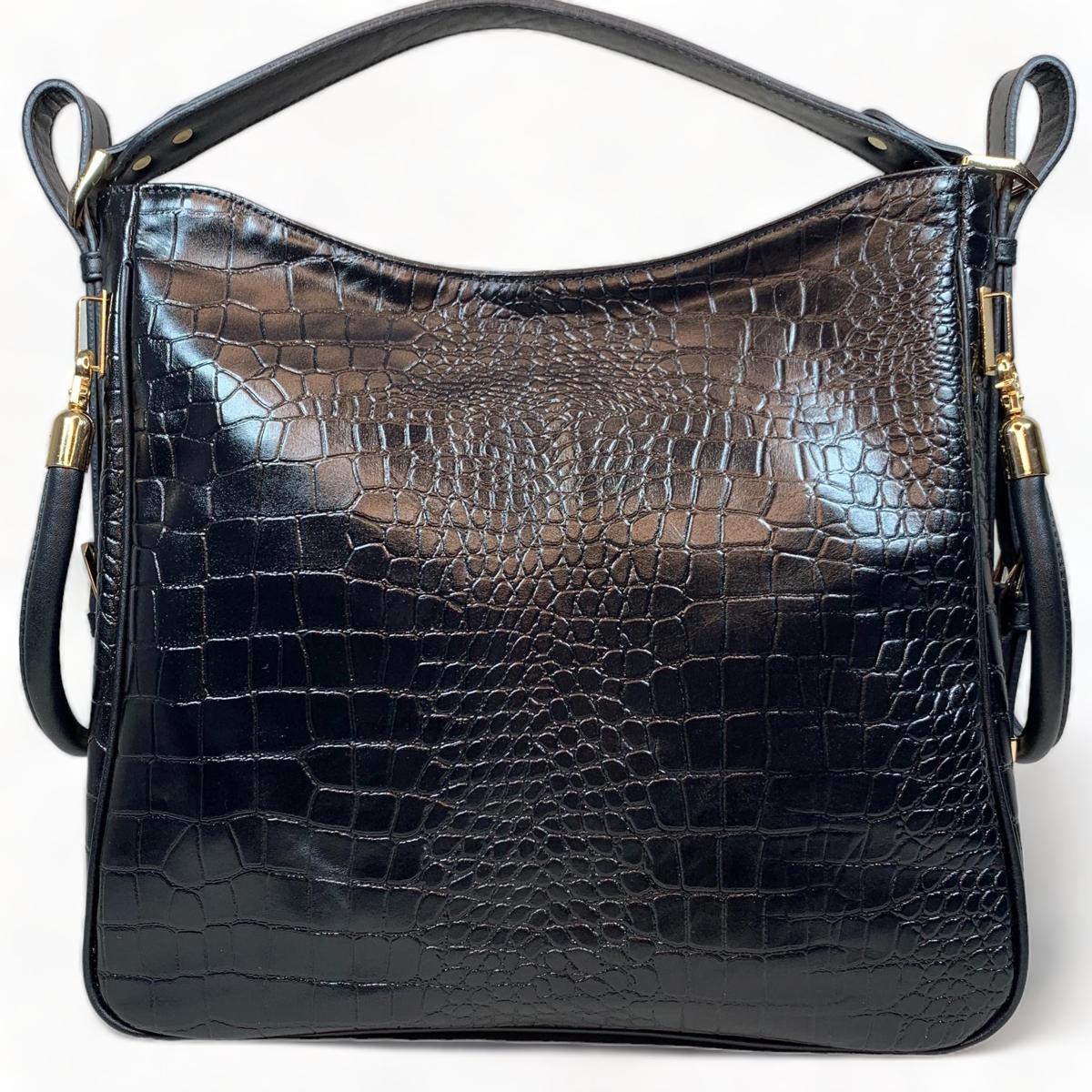 LeatherLuxe - Black Leather Tote Bag - Crocodile Style