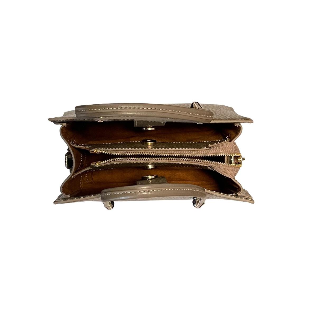 Introducing the Sophisticated Genuine Top-Grain Leather Handbag for Women: Your Versatile Companion for Office and Evening Affairs. Featuring a Secure Zip Closure, Three Spacious Compartments, and a Sturdy Frame for Added Durability and Structure. Perfectly Designed to be Worn as a Shoulder Bag for Effortless Style.