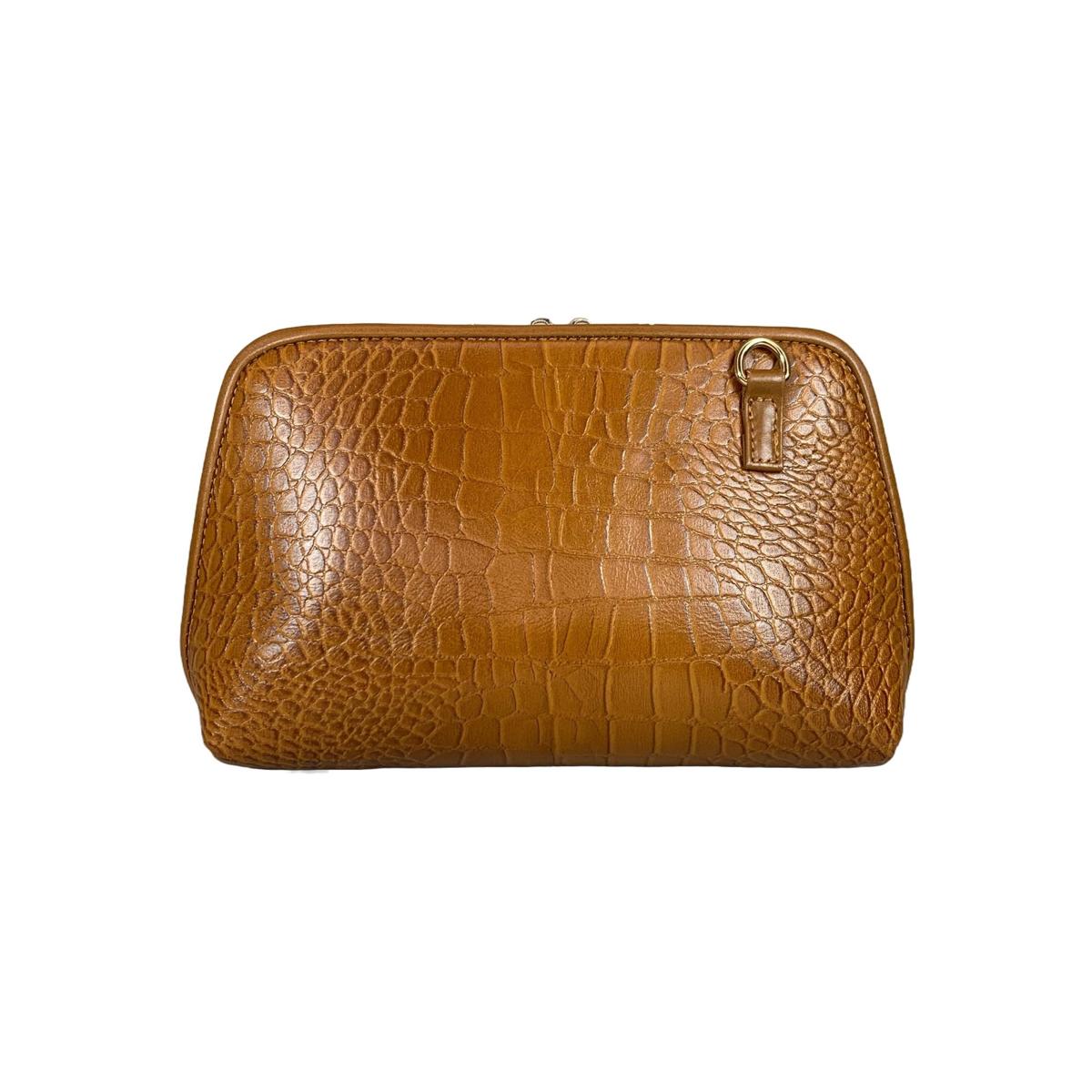 LeatherLuxe - Light Brown Leather Clutch Bag Shoulder Bag; Crocodile Style; Crossbody