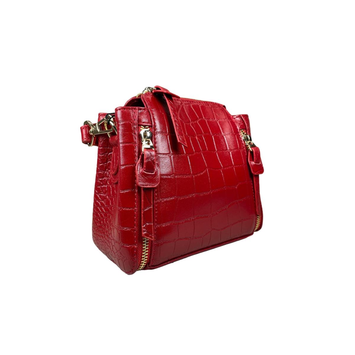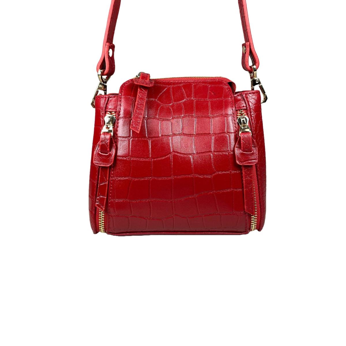 LeatherLuxe - Red Leather Handbag Shoulder Bag for Women; Crocodile Style
