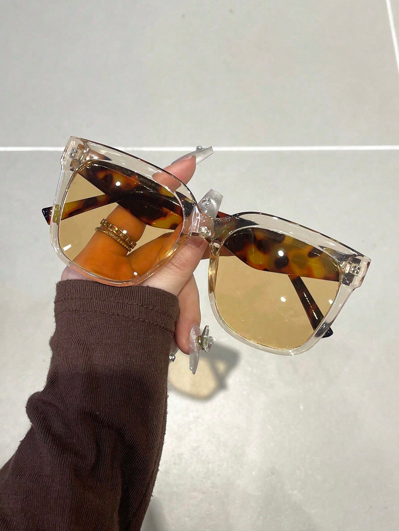 1pc Plastic Geometric Full Frame Leopard Decoration All-Match New UV Protection Women Sunglasses For Summer Rave Party Street-Photography Tropical Beach Vacay Bachelorette Party Carnival Aesthetic Fashion Accessories